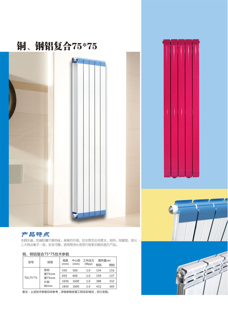 坚持以人为本科技为先导。以“诚信铸就品牌,科技提升效绩”的经营方针面对市场及广大消费者。企业生产的散热器系列产品是多年来积累技术和经验的结晶,是全体工作人员不懈的努力的成果,我们向广大消费者保证,将投入更大的力量,通过严格的质量检验,努力开发新的产品,开创一个强盛的采暖新时代,与您共同发展!
